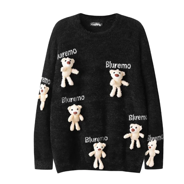 Cartoon bear knitted round neck loose sweater
