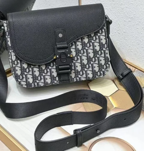 Spring and summer new men's bag saddle bag cowhide messenger canvas flap bag European and American fashion business shoulder crossbody bag