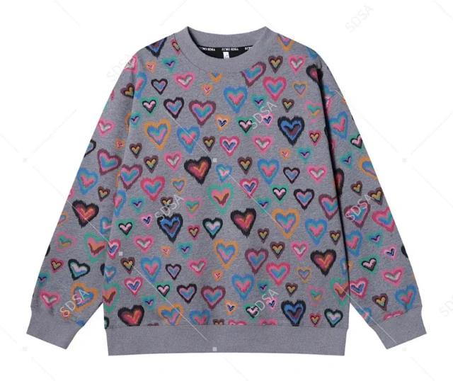 Colorful Heart Crewneck Sweatshirt, Versatile and Comfortable Pullover Top