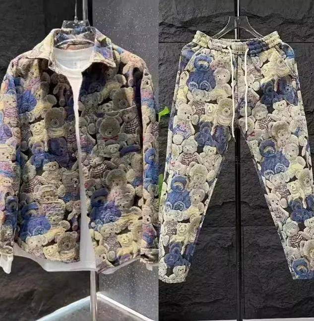 Bear Pattern Fashion Jacket and Loose Casual Pants Trendy Set