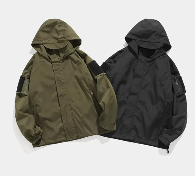 Velcro Hooded Jacket Workwear Casual Loose Coat