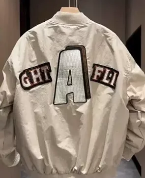 DW Smiley Letter Solid Color Stand Collar Cotton Jacket1