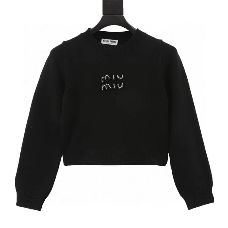 M pearl embroidered crew neck sweater available in two colors