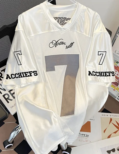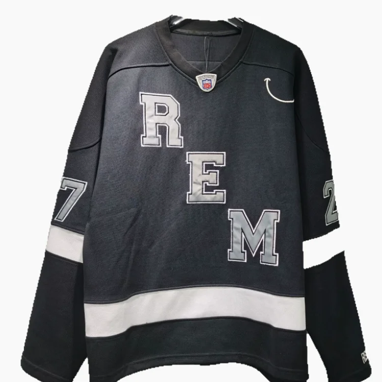 American fashion brand badge, heavy industry embroidery, No. 27 patch jersey, casual loose high street long sleeves