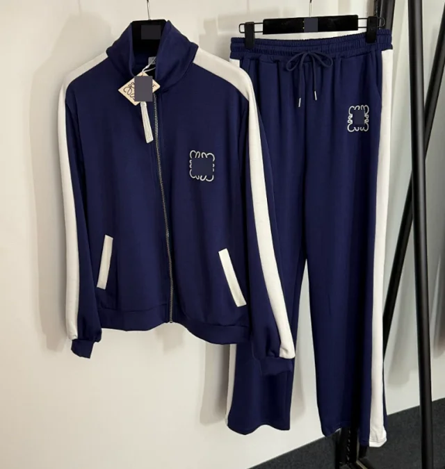 Stand-collar long-sleeve zip-up jacket with elastic waist casual long pants set1