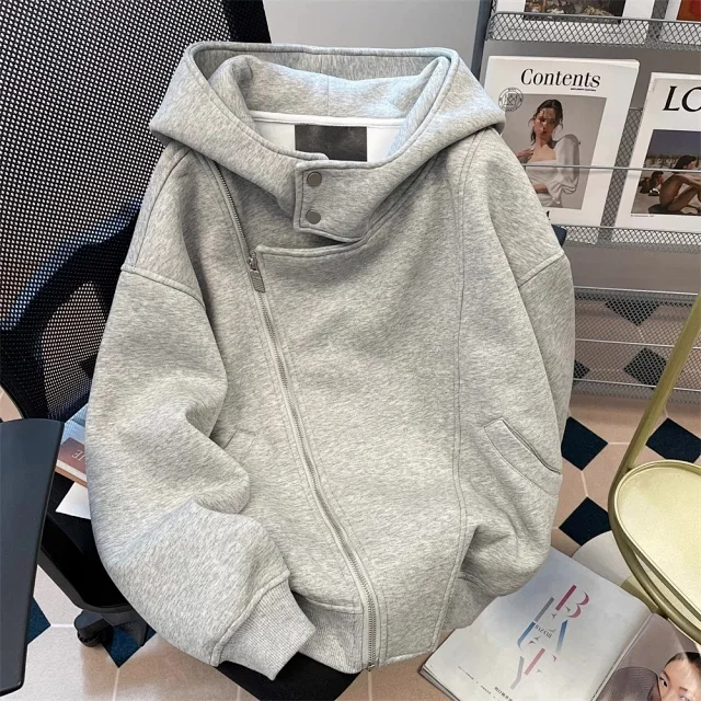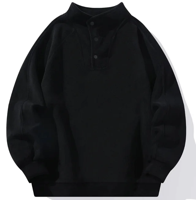 Casual loose-fitting stylish versatile stand-collar pullover sweatshirt with button closure1