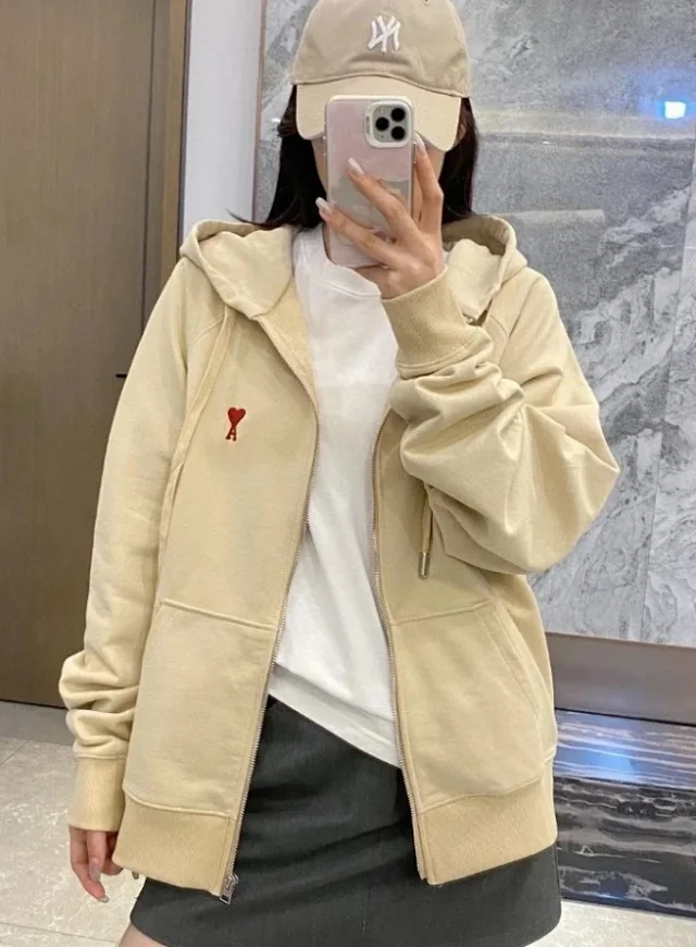 Fashionable7 and pure-color couple's heart casual versatile zip-up hoodie