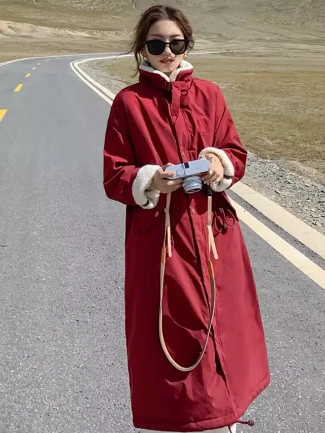 Thickened, fleece-lined, mid-length, over-the-knee loose cotton coat3
