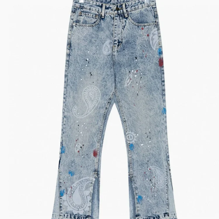 ALP trendy brand cashew flower splash ink couple washed jeans