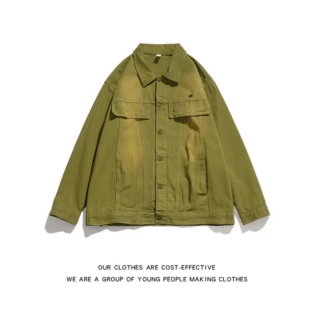 Washed Vintage Workwear Style Retro Turn-Down Collar Casual Jacket