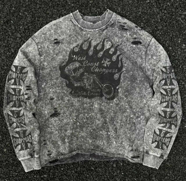 Trendy Washed Skull Motorcycle Pattern Crewneck Pullover Sweatshirt