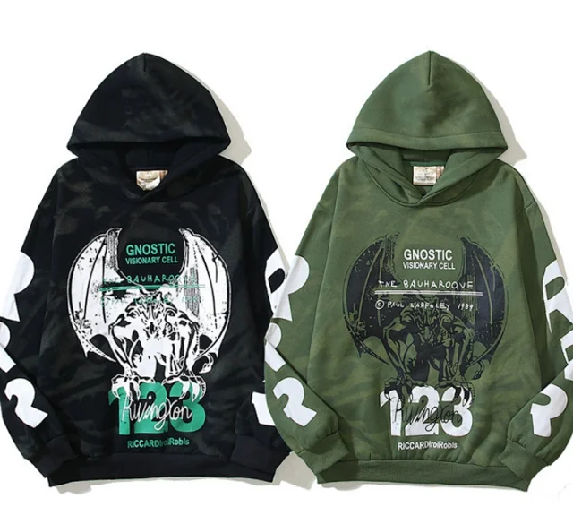 RR Demon Letter Pattern Pullover Fleece Hoodie