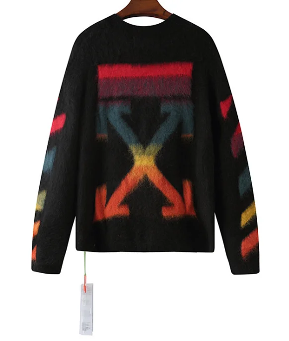 OW Vintage Loose Casual Hoodie with Arrow Pattern