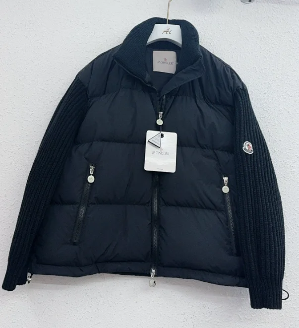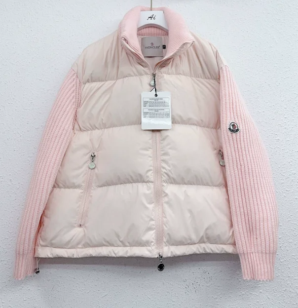 Minimalist knitted sleeve splicing high-neck zipper down jacket1