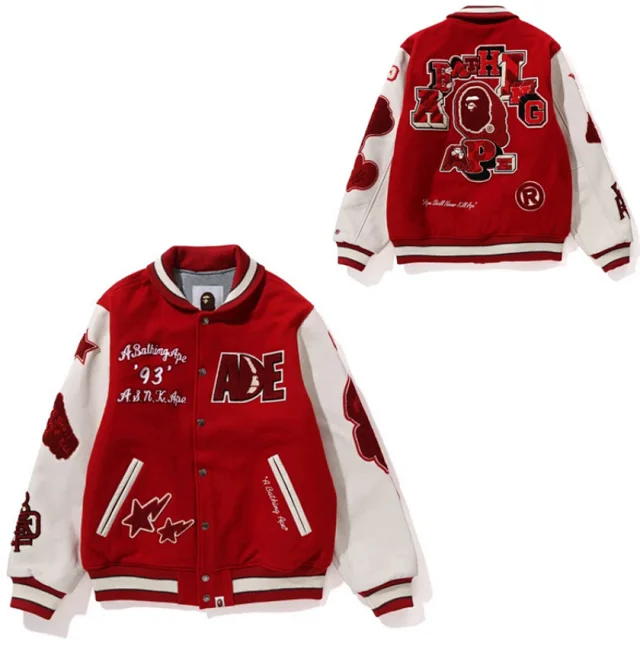 REP Vintage Letter Pattern Baseball Jacket
