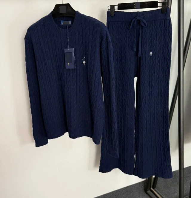 RL Twisted Striped Knit Sweater with Drawstring High-Waist Casual Pants Set2