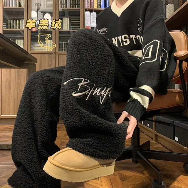 Fleece-lined wide-leg plush casual sweatpants1