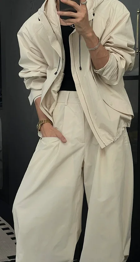 Outdoor workwear waterproof jacket with hood, loose casual versatile pants set