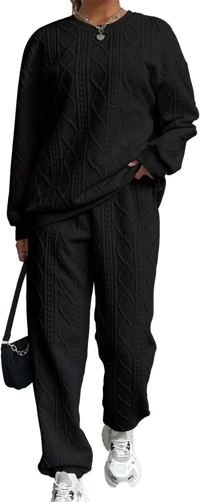 Twisted Knit Long-Sleeve Round Neck Top and Jogger Pants4